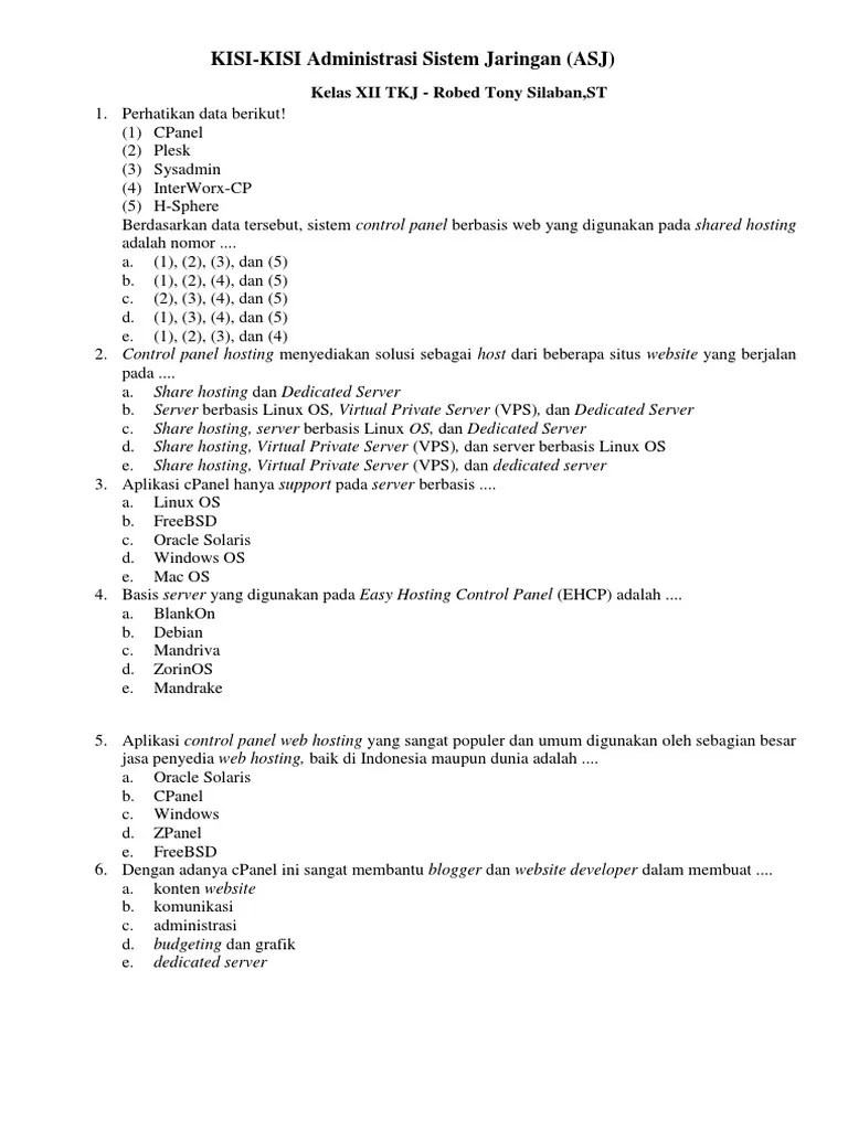 Bagaimana cara yang bisa dipakai guru untuk membuat soal . Kita bisa menemukan garis tersebut pada menu. Soal teori terkait dengan pajak penghasilan seperti pegnertian subyek pajak dan obyek pajak, pemahaman mengenai beban yang boleh dikurangkan, pengertian pajak . Soal semester ganjil tahun ajaran 2017/2018 mata pelajaran : Berikut ini yang bukan merupakan ciri administrasi yaitu …. Akses terhadap berbagai perangkat keras yang terhubung pada . Doc soal soal pilihan ganda myob beserta jawabannya fina dwinuriyani academia edu. Peraturan menteri ini berlaku sejak tanggal diundangkan. 81 sjachran basah, perlindungan hukum terhadap sikap tindak administrasi negara, cetakan kedua, alumni,. Secara umum semua sistem operasi memiliki empat fungsi berikut: Terdapat lebih dari 100+ contoh soal essay dan pilihan ganda dilengkapi jawabannya dalam format.doc (ms. X ps & ak nama guru :
